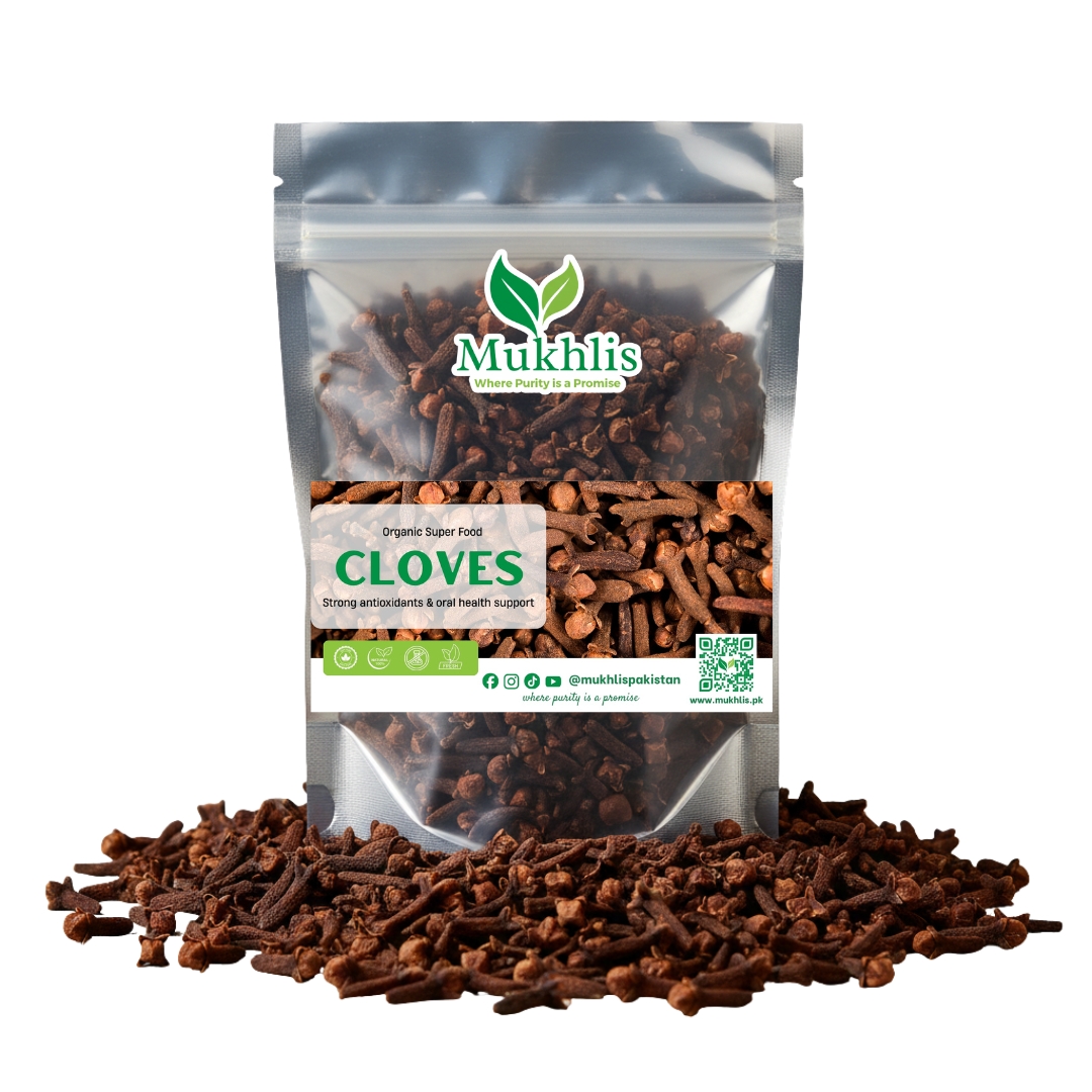 Mukhlis Cloves (Laung) are aromatic spice buds rich in antioxidants, used to enhance flavor, support digestion, and promote overall wellness.